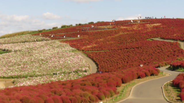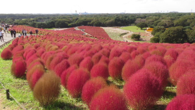 随分とすごいですコキア たくさんの見物されているんですね!! 広大な光景ナイス